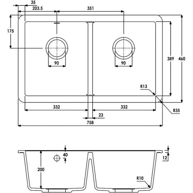 The Abode Matrix 2 bowl granite inset undermount kitchen sink has a durable matt finish and granite composite construction throughout.