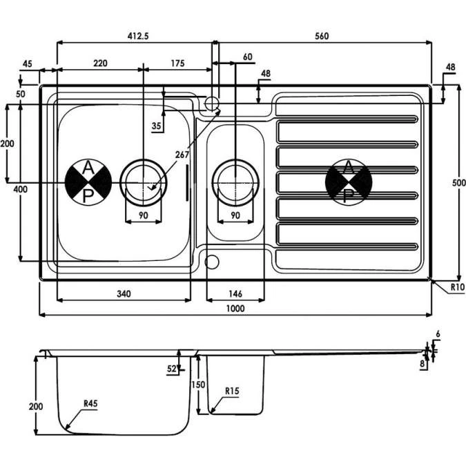 - Second Bowl Dimensions: W 146 x D 296 x H 150mm