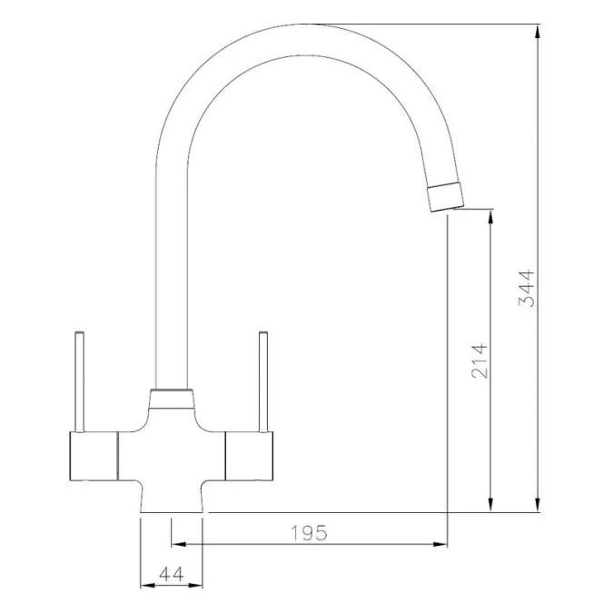 - Tap dimensions: overall height – 344mm; spout height – 214mm; spout reach – 195mm; base/handle width – 44mm