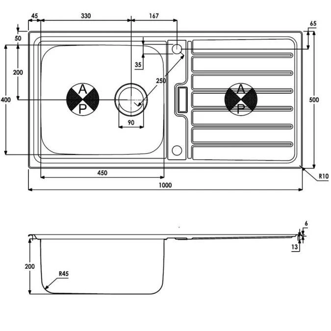 Abode Neron 1 Bowl & Drainer Inset Kitchen Sink – Stainless Steel
