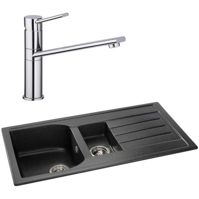 Abode Oriel 1.5 Bowl Inset Black Granite Kitchen Sink & Specto Tap Pack