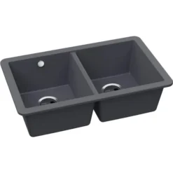 Abode Matrix Square GR15 Large 1 Bowl Granite Inset / Undermount Kitchen Sink – Black Metallic
