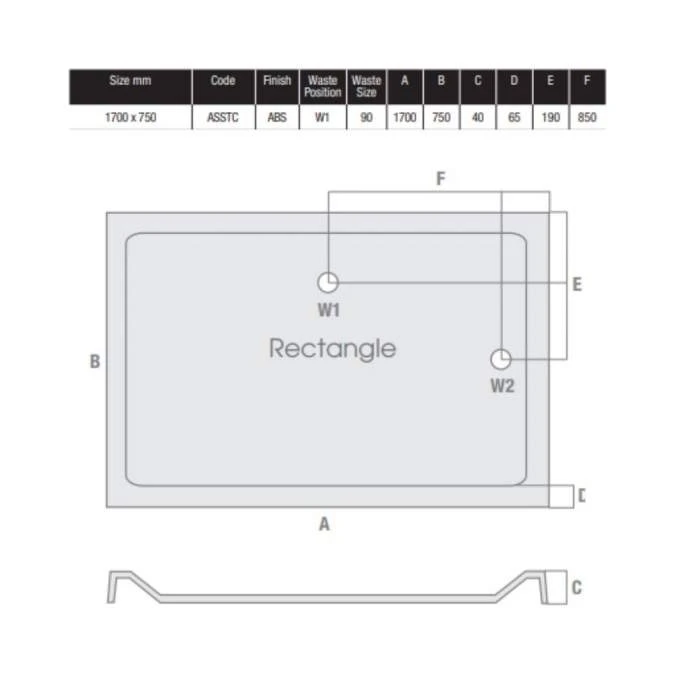 MX Elements – 1700 x 750mm – Anti Slip Rectangular ABS Stone Resin Shower Tray Inc Waste