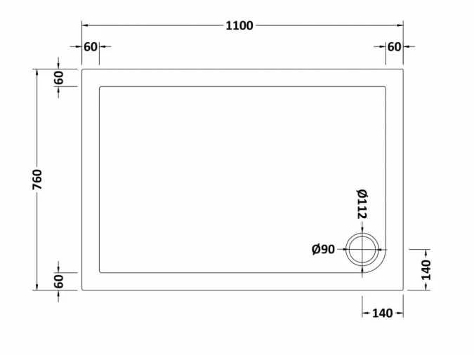 NUIE 1100 x 760 rectangle shower tray features: