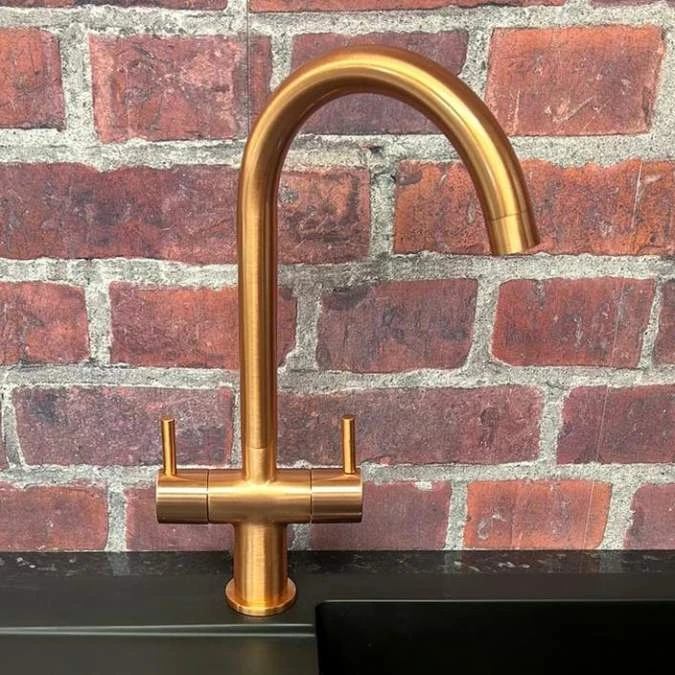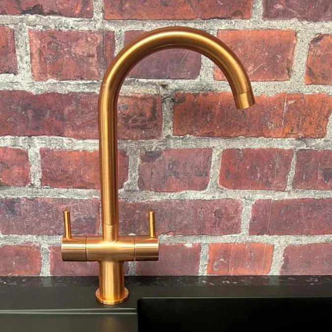 Shannon Twin Lever Kitchen tap in Copper is simple and stylish with easy to use dual lever tap handles enabling you to regulate both temperature and flow at the same time. The Shannon kitchen tap is one of our most popular designs and styles of kitchen tap specified by kitchen designers and installers alike.