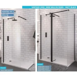 Vantage 8mm, 1200mm Matt Black Walk In Shower Screen – Eastbrook
