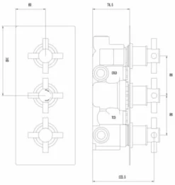 Tec Crosshead Triple Shower Valve With Diverter – Three Outlet – Hudson Reed