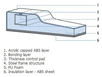 The offset corner shower tray height is 35mm Acrylic capped with a 18mm x 18mm x 1.2mm square tube, formed to be the exact shape of the tray to ensure rigidity for a lifetime of use.
